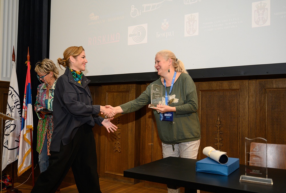 Član žirija Narcisa Darijević Marković uručila je nagradu Grand Prix za najbolji film BOSIFEST-a 2025. rediteljki Marti Gómez za film Leteće ruke (Španija). LETEĆE RUKE - Grand Prix za najbolji film.