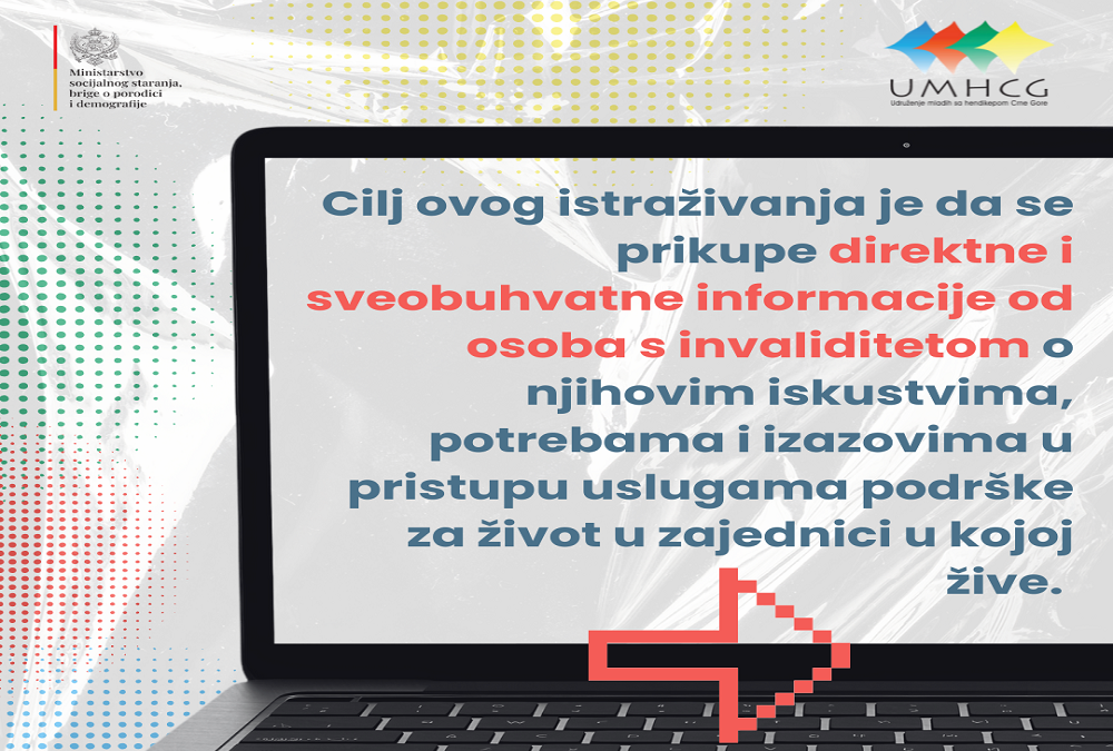 Istraživanje sprovodi Udruženje mladih sa hendikepom Crne Gore (UMHCG) u okviru projekta Ka inkluzivnim servisima i politikama za samostalan život, uz finansijsku podršku Ministarstva socijalnog staranja, brige o porodici i demografije.